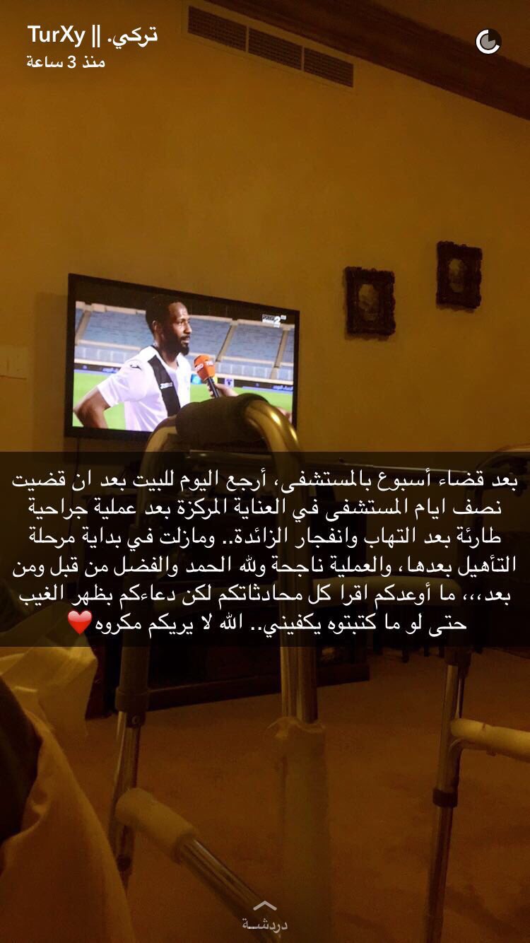 فهد القثامي On Twitter دعواتكم لأخونا تركي الحمد لله على سلامتك و ما تشوف شر يالغالي و الله يجمع لك بين الأجر و العافية يارب Turxy
