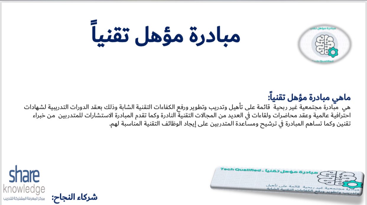 مالك الدوسري Malek Aldossary On Twitter كلمة مبادرة مؤهل تقنيا ودعمها للشباب في تأهيل وتطوير الش باب وتنتظر دعمكم