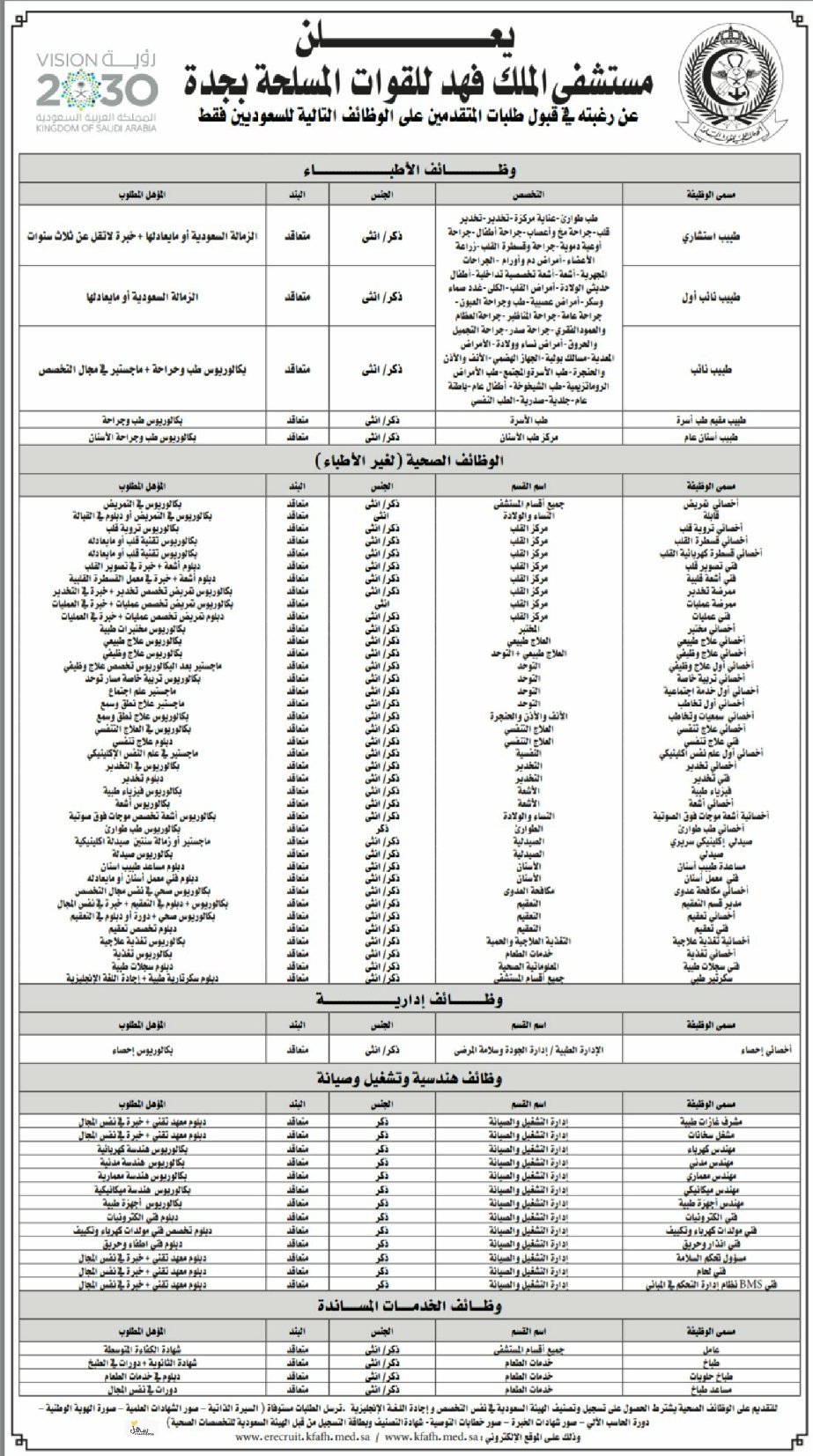 حمد المنيف On Twitter مستشفى الملك فهد للقوات المسلحة في جدة يعلن عن توفر وظائف شاغرة ومتنوعة للجنسين بالتوفيق للجميع