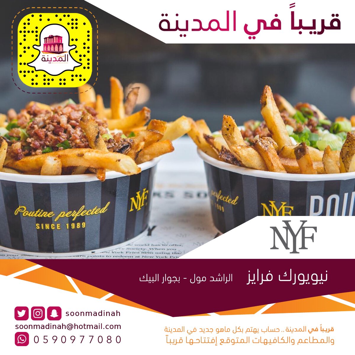 قـريـبـا فـي الـمـديـنـة בטוויטר قريبا في المدينة أول فرع لـ مطعم نيويورك فرايز مطعم أمريكي في الراشد مول بجوار البيك المدينة المنورة اكتبوا للمتابعين آرائكم عن المطعم Https T Co G1bici8wnc