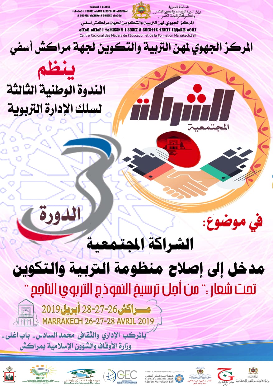 الندوة الوطنية الثالثة لسلك الإدارة التربوية تحت شعار الشراكة المجتمعية مدخل إلى إصلاح منظومة التربية والتكوين