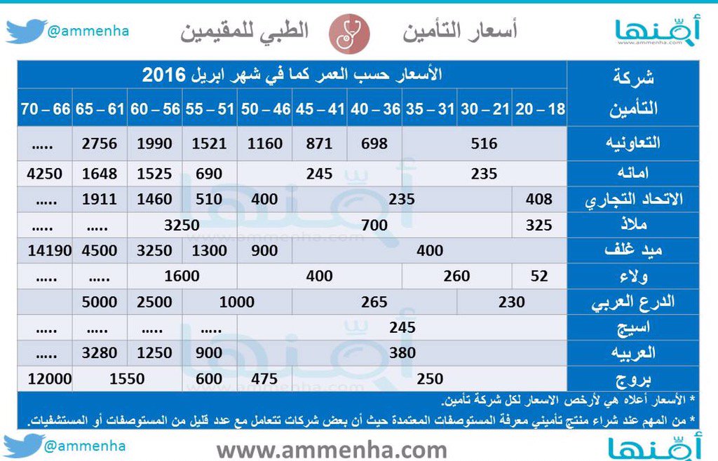 أمنها لأسعار التأمين בטוויטר مهم لتجديد الاقامة تحديث ل أسعار التأمين الطبي للمقيمين في السعودية هناك تخفيض 8 لزوار موقعنا Https T Co Zwdnna9sod Https T Co Tjvilkuqtq